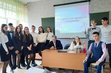 Обучающиеся 8Б класса в центре "Заман" на слайд- очерке "Неоконченная линейка", посвященная терракту в Беслане в рамках месячника "Терроризму-нет!"