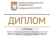 Поздравляем ребят из 8а класса, Ахмадеева Дамира и Макарову Ксению - призеров Региональной научно - практической конференции школьников " Физика и астрономия в современном цифровом обществе" .