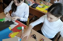 4б класс на кружке"Дорожная азбука" продолжили работу по созданию макета"Перекресток". Надо многое знать и расстановку светофоров и дорожных знаков и правильную разметку дороги. Это самый сложный момент. Но друдео, все вместе мы сделаем этот макет.