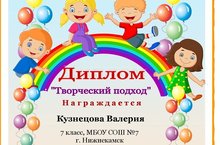 Классный коллектив 7Б класса поздравляет Кузнецову Валерию, награжденную дипломом Муниципального конкурса детского творчества «Мы будем вечно прославлять ту женщину, чьё имя — Мать!», преподаватель Вяселева Ф.М.