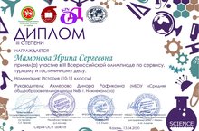 Поздравляем ученицу 11 класса Мамонову Ирину и руководителя Ахмерову Д.Р. с почетным 3 местом в III Всероссийской олимпиаде по сервису, туризму и гостиничному делу.