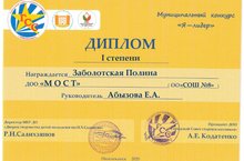 Поздравляем ученицу 8б класса Заболотскую Полину занявшую 1 место в Муниципальном конкурсе "Я - лидер". Руководитель Абызова Е.А.