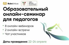 С 22 по 24 апреля для руководителей детских общественных объединений Республики Татарстан проходил образовательный семинар совместно с РОО «Совет детских организаций Республики Татарстан» и онлайн-школы Bubo Unicus. Цель семинара: поддержка деятельности руководителей детских общественных объединений на период дистанционного обучения. Спикерами вебинаров выступали руководители и активисты региональных общественных объединений, а так же специалисты онлайн-школы «Bubo Unicus». Программа включала в себя следующие темы :