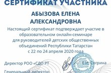 Поздравляем педагога-организатора нашей школы Абызову Е.А. с прохождением образовательного онлайн семира для руководителей детских общественных объединений Республики Татарстан. Желаем успехов в дальнейшей работе!