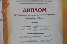Поздравляем ученицу 8г класса Ефремову Яну с победой в секции "Иностранная филология" III Региональной научно-практической конференции "Мы - будущее XXI века" (рук-ль: Гришина Н.Г.).