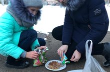 Сегодня SMS-дети вместе со своим руководителем Минахметовой Р.З. провели акцию "Накорми бездомных животных".