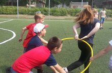 Студенты Нижнекамского педагогического колледжа - будущие учителя физической культуры организовали и провели для наших ребят веселые эстафеты и игры с мячом на спортивной площадке.