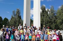 Сегодня ребята из пришкольного лагеря были на экскурсии в сквере им. Лемаева. У Монумента Победы воспитатели рассказали о подвигах советского народа в годы войны. После ребята провели время на детских площадках и посмотрели фильм в кинотеатре.