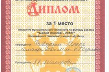 Ученик 5а класса нашей школы Фатхуллин Ильназ получил Диплом за 1 место в открытом муниципальном чемпионате по футболу роботов "Салют mundial-2018!", псвященном Чемпионату мира по футболу.