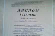 На VI Республиканской конференции исследовательских краеведческих работ "Жить, помня о корнях своих..." ученица 11а класса Иванова Наталья получила Диплом I степени в номинации "Военная история" (руководитель: Фахриева Г.Г.).