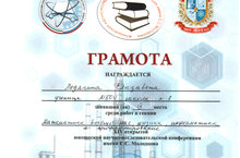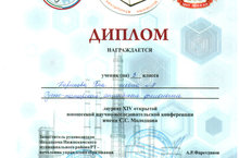 Лодягина Елизавета заняла 3 место в XIV открытой юношеской научно-исследовательской конференции имени С.С. Молодцова (руководитель: Нурмухаметова Э.В.)
