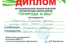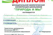 Громова Виктория и Ланцова Алена стали лауреатами Муниципальной экологической конференции школьников «Природа и мы» в номинации «Экология города» и заняли 3 место (руководитель: Халикова С.Р.).