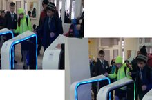 Сегодня 17.04.15г. вход в школу строго по школьным картам и браслетам. Под присмотром дежурного администратора и классных руководителей удалось организовать проход через установленные СКУДы без задержек.