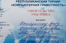Учащийся 11 класса Насибуллин Азат (руководитель: Дорофеева Т.В.) получил свидетельство участника в Республиканском турнире "Компьютерная грамотность" за создание сайта "Город-герой Севастополь".