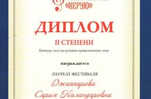 ДИПЛОМОМ II степени в конкурсе эссе на духовно - нравственную тему награждается лауреат фестиваля Джаппарова Сария Каламдаровна, а так же подарком "Мультиваркой"