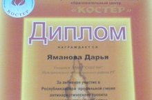 С 23 по 25 марта состоялась смена "Самостоятельных детей" в лагере "Костёр". Тематика программы была связана с Годом Человека России и Годом литературы. Всего в смене участвовало 130 человек, из них только 20 получили Дипломы. Среди них оказалась и наша ученица Яманова Дарья из отряда "REAL".