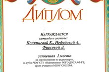 Димплом 1 место: команда в составе Полянцева К., Нефедова А., Фисрова Д.
