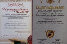 Подведены итоги Всероссийского конкурса по математике "Эврика", в котором участвовали 33 учащихся нашей школы из 5-7 классов. Ребята получили сертификаты об участии, а так же дипломы: I место - Козлова Полина и Петрунин Никита, III место - Гайфуллина Илзира и Шайхутдинов Айнур. Учителям математики Синдимировой Т.В., Смирновой О.В. и Шалаховой Н.Е. были вручены сертификаты организаторов конкурса "Эврика" в школе, от директора ЦДО "Отличник" Никифоровой И.С. выслано Благодарственной письмо директору нашей школы - Сергееву Анатолию Степановичу.