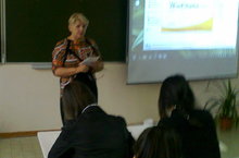 6 октября в рамках сотрудничества нашей школы и Нижнекамского химико-технологического института состоялась встреча учащихся 10, 11-го классов с преподавателями НХТИ – зав. кафедрой государственного муниципального управления, социологии и менеджмента доктором социологических наук, профессором Губиной Н.В. и доцентом этой кафедры, кандидатом политологических наук Багаевой И.А. Педагоги института раскрыли такое важное для общественного самосознания понятие, как демократия, рассказали ребятам о проведении международного мероприятия, «Европейская неделя местной демократии – 2014» пригласили учащихся 10, 11-го классов 16 октября принять участие в работе круглого стола «Город начинается с меня», посвященного проблемам загрязнения окружающей среды города.