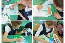 24 апреля в рамках санитарно - экологического двухмесячника «ЭКОВЕСНА» учащиеся 2В класса поговорили о первоцветах и выполнили открытки в технике пластинографии.