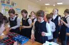 Сегодня ребята 3Б класса сыграли во вторую игру арифметического космо-квеста. Им очень понравилось собирать роботов, обменивать энергию на ядра. В конце игры они побили рекорд и набрали целых 350 ядер, чему были безумно рады.