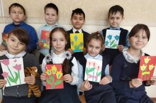 Учащиеся 2В класса поздравили своим мам с праздником, и подготовили рисунки и поделки.