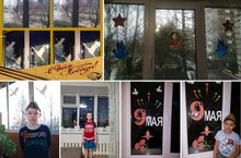 Ученики 1в класса к великому празднику 9 мая оформили окна Победы 08.05.2022