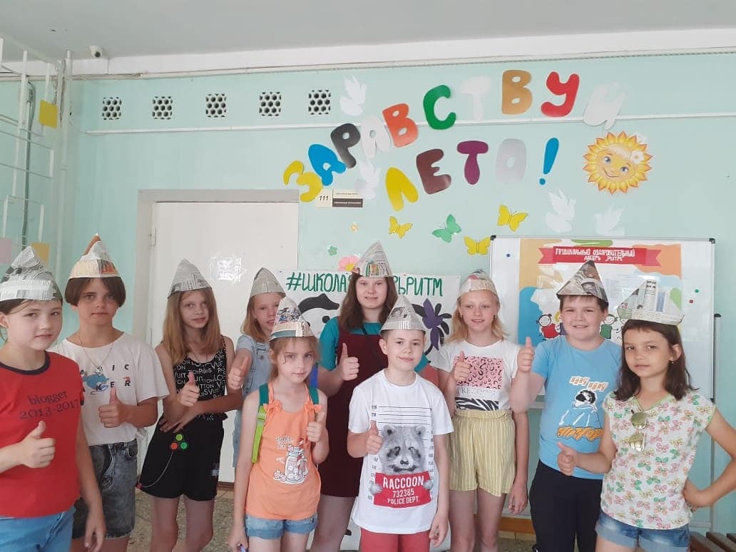 Сегодня в пришкольном лагере "Ритм" воспитатели провели для ребят мастер-класс по изготовлению бумажных головных уборов