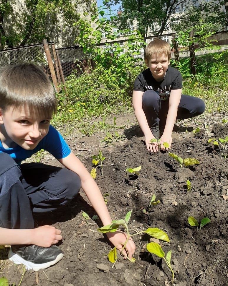 Учащиеся 3 В класса на занятиях по внеурочной деятельности "Путешествие в мир экологии" совместно с классным руководителем М.Н. Кадриевой выращивали рассаду в своём школьном кабинете, а сегодня, в конце учебного года, ребята начали высаживать их на пришкольном огороде. -
