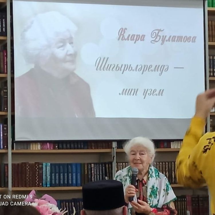 Буген Г. Тукай исемендэге узэк китапханэдэ шагыйрэ Клара Булатова белэн очрашу узды. Искиткеч жанлы, жылы очрашу булды ул. -