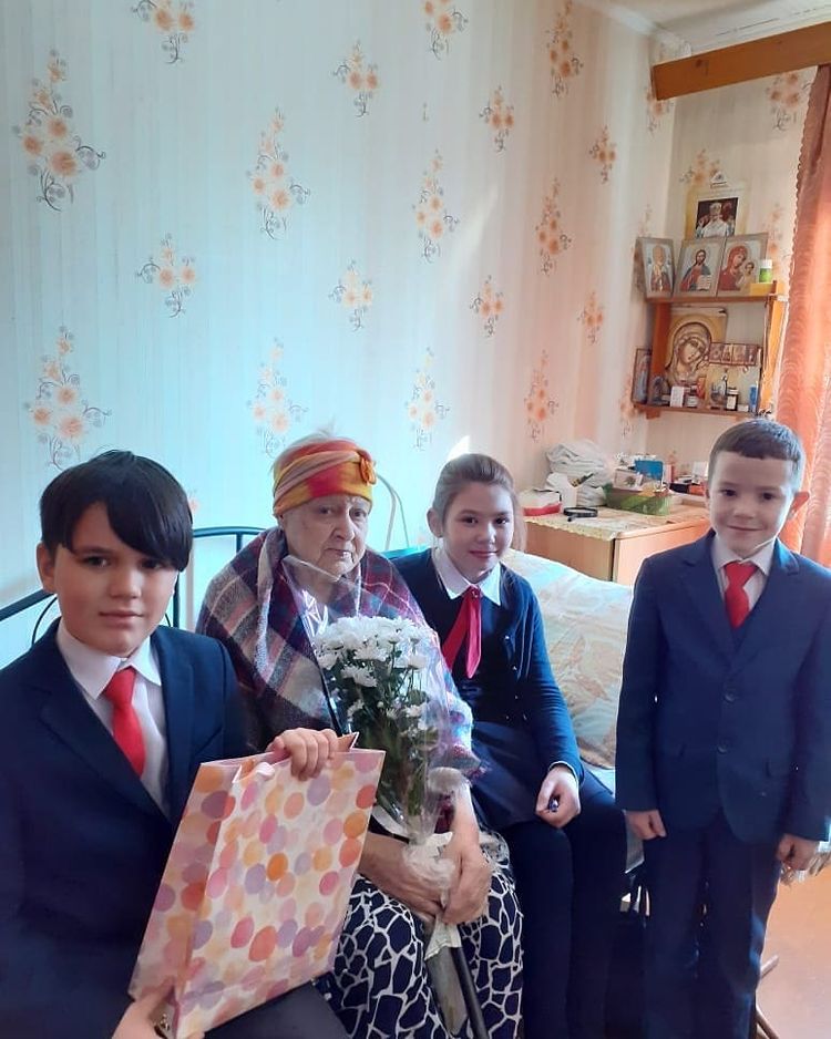Сегодня учащиеся 3 В класса приняли участие в проекте " У войны не женское лицо". Ребята совместно с классным руководителем М.Н. Кадриевой посетили Труженика тыла - Лыжеву Алину Алексеевну. Они вручили Алине Алексеевне подарки и послушали истории о жизни Тружеников тыла во время ВОВ. -