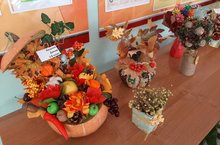 В школе проходит подготовка к празднику "День добра и уважения". Учащиеся изготовили подделки и букеты на тему "Дары осени", а также открытки для пожилых людей.