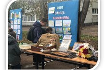 Выездная выставка экспонатов школьного музея имени Героя Советского Союза Н.Ф. Кайманова, раздача буклетов о школьном музее.