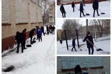 Волонтеры помогают в уборке снега на территории школы №9, детских садов №22, 19. -