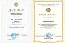 Поздравляем Ибрагимова Инсафа, учащегося 6 Б класса, ставшего призером Республиканской олимпиады школьников по математике. Дмитриева Мария Владимировна, учитель математики, награждена Почетной грамотой МО и Н РТ за подготовку призера Республиканской олимпиады школьников. Желаем успехов!