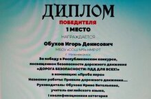 Поздравляем нашего ученика Обухова Игоря из 9б класса, завоевавшего первое место в Республиканском конкурсе «Дорога безопасности: ПДД для всех!» в номинации «Проба пера»!