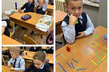 На уроках математики учащиеся 1 А класса не только учатся считать, решать задачи и писать цифры, но и учатся мыслить логически и фантазировать.
