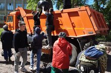 27 мая 2024 года учащиеся старших классов школы №9 грузили мешки с листвой в камаз. Мы за чистый город !
