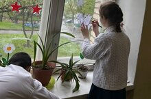 К мероприятию присоединилась и наша школа. Так, учащиеся 2Б класса совместно с классным руководителем Шараповой Ириной Александровной, с соблюдением мер безопасности украсили окна своего класса иллюстрациями и символами Победы, словами благодарности ветеранам. Для украшения ребята использовали самостоятельно изготовленные трафареты и аппликации, рисовали красками на окне.