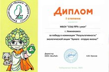 Школа №9 заняла первое место в номинации «Результативность» в экологической акции «Бумаге — вторую жизнь!».