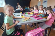 07 июня в Доме народного творчества, в рамках проекта «Хорошо, что есть каникулы», прошёл мастер-класс «Жители моря». Мальчики и девочки с помощью кисточек и красок исследовали дно моря и знакомились с морскими жителями, а помогала им пиратка Матильда.