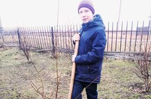 На родине своего прадедушки - Терентьева Василия Климентьевича, Аксубаевский район, село Старое Тимошкино, Георгий посадил саженец в саду в честь прадеда.