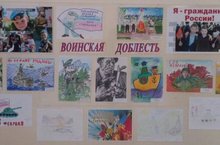 В предверии праздника 23 февраля с целью патриотического воспитания в школе была организована выставка детских творческих работ учащихся 1-9 классов под названием "Воинская доблесть".