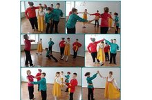 Преподавателем были показаны и проработаны комбинации элементов русского танца. Ребята в народных костюмах изучая элементы русского танца почувствовали себя юными артистами. -
