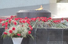 Преподнесённые учащимися 7,8,9 классов красные гвоздики к "вечному" огню - как добрая светлая память в самый великий и знаменательный день нашей необъятной Родины.