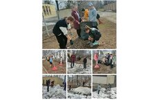 В рамках санитарно-экологического двухмесячника старшеклассники и педагоги нашей школы взялись за благоустройство пришкольной территории: раскидывают снег, чтобы он быстрее растаял, очищают газоны от мусора и прошлогодней листвы.