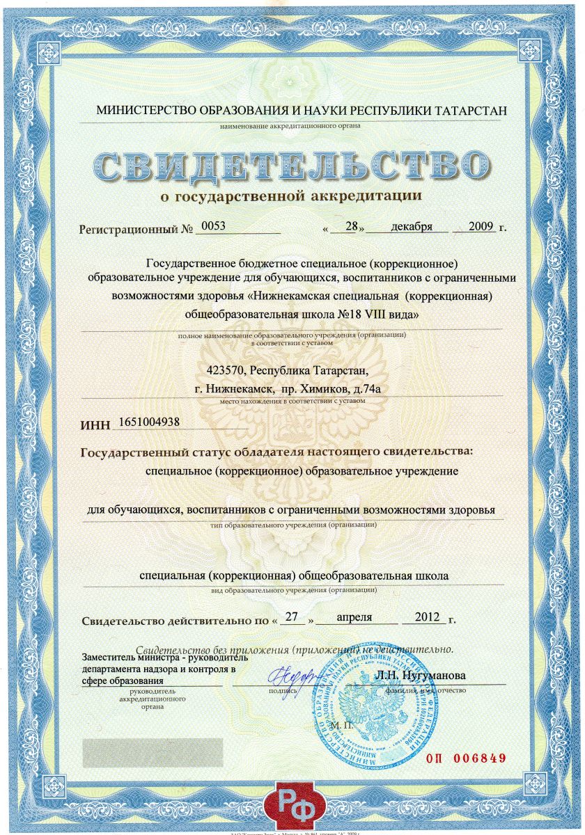 Государственное бюджетное общеобразовательное учреждение «Нижнекамская школа №18 для детей с ограниченными возможностями здоровья»