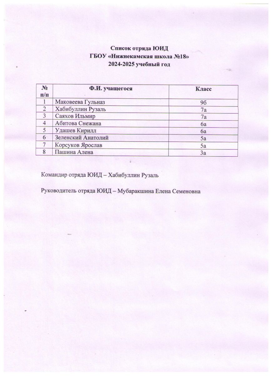 Список отряда ЮИД 2024-2025 год
