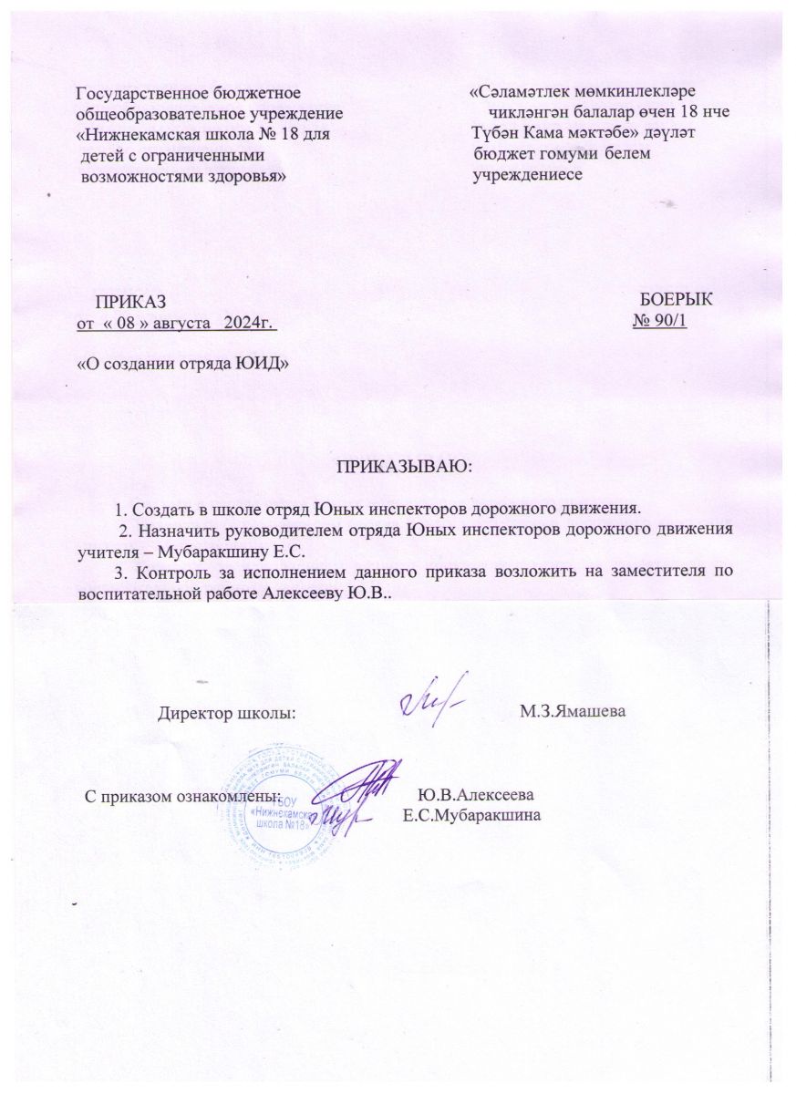 Приказ о создании отряда ЮИД на 2024-2025 год