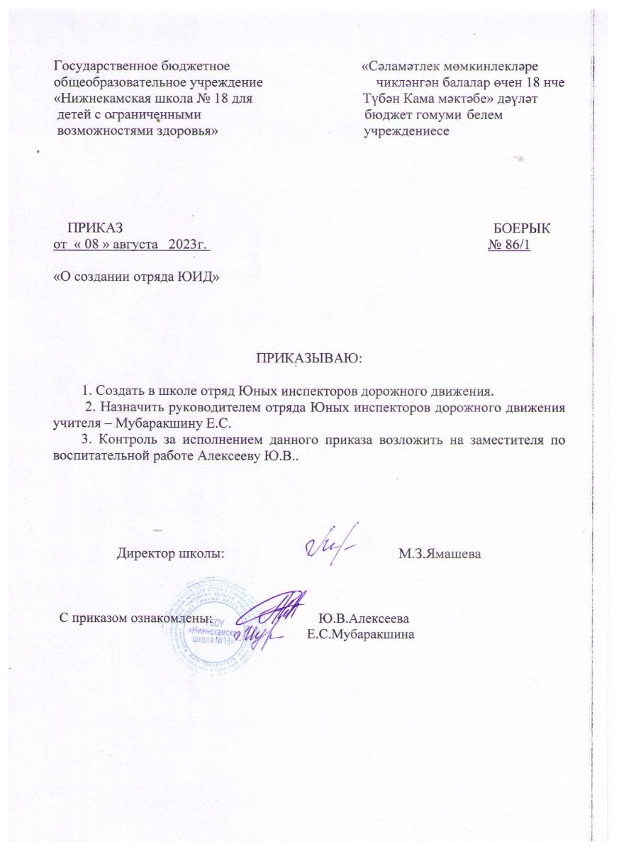 Приказ о создании отряда ЮИД 2023-2024 учебный год